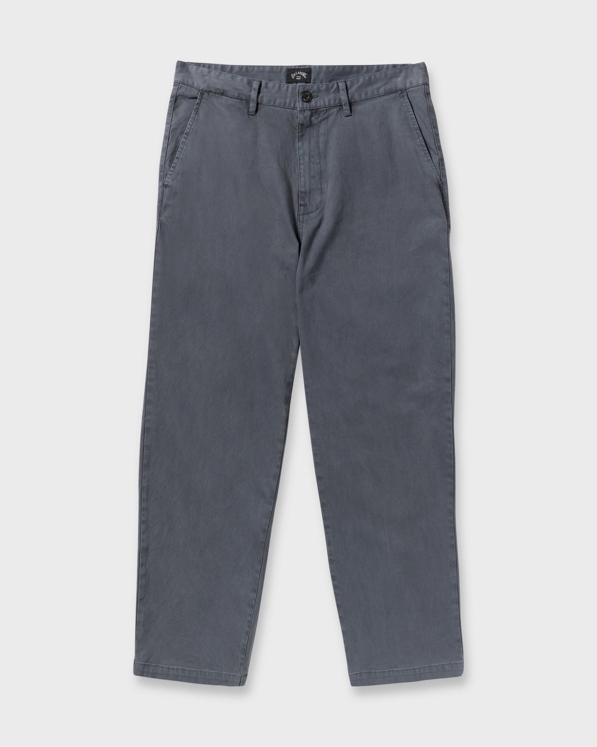 Our vintage-washed chinos blend structured workwear style with everyday comfort. The peached cotton twill fabric feels soft against skin, while practical pockets and a slim straight fit keep things clean and classic. Featured here in the Blue colorway.