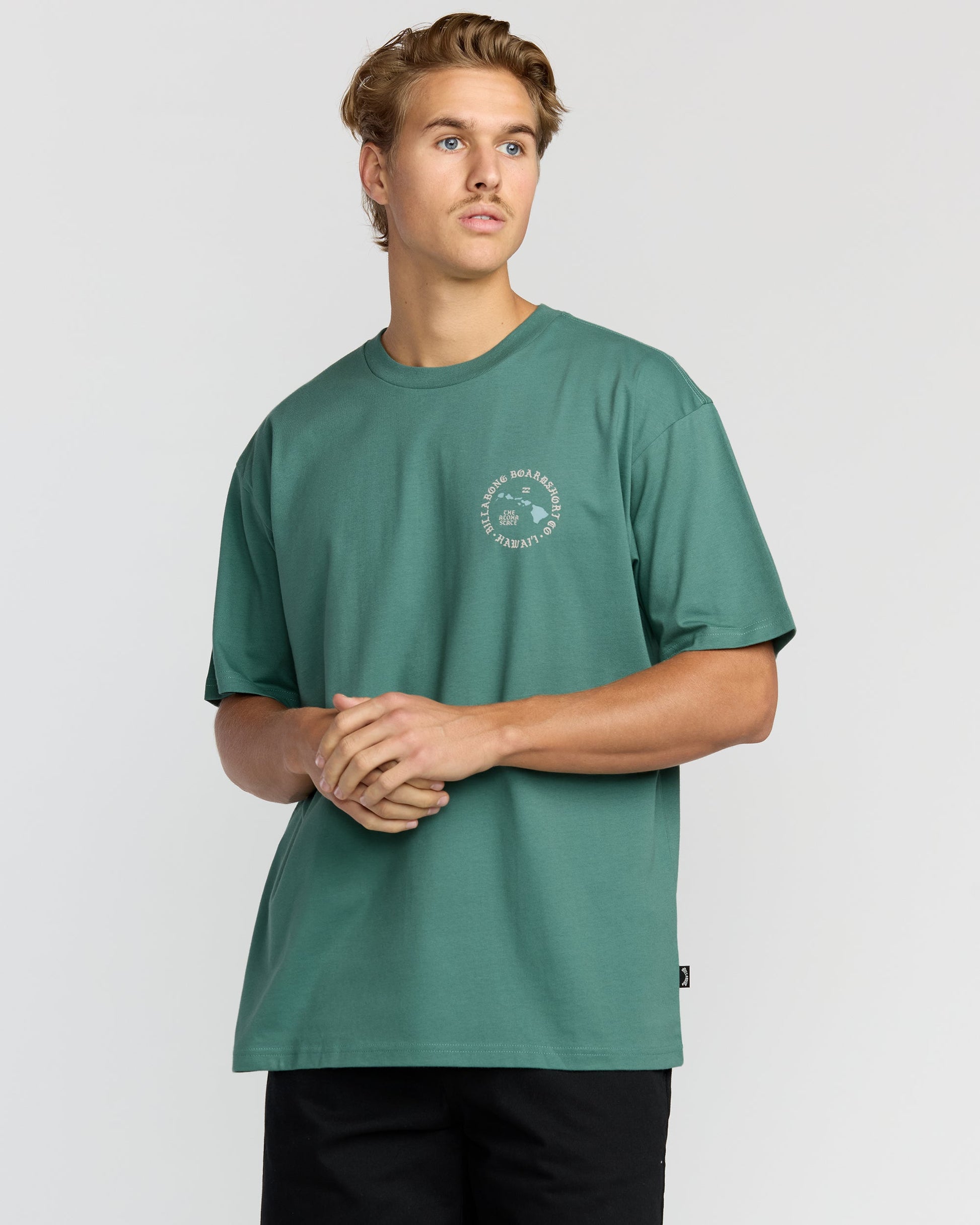 Our classic cotton t-shirt brings island vibes with front and back screen prints. Relaxed shoulders and a wider neck keep things comfortable, while garment washing adds lived-in softness to this regular fit essential. Featured here in the Green colorway.