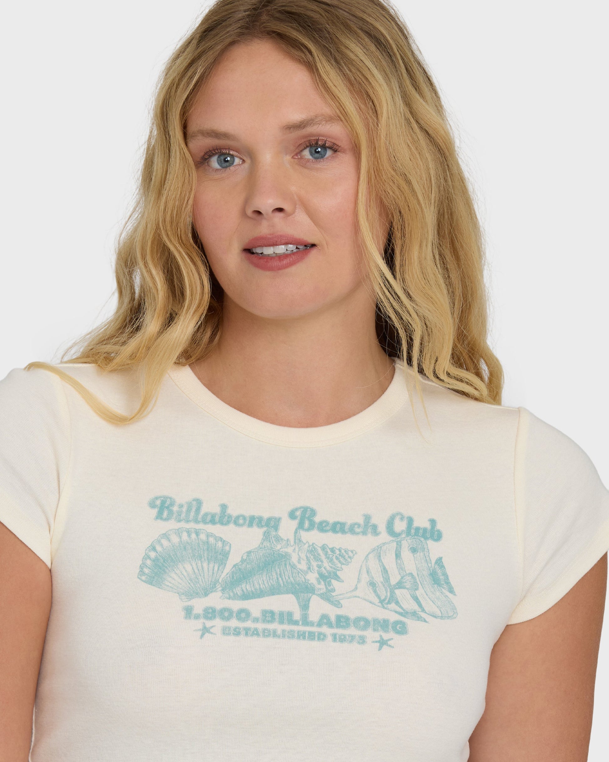 Master laid‑back coastal style in the Billabong Women’s Beach Club Short Sleeve Tee This cropped, relaxed‑fit top showcases a vintage‑inspired pastel shell and fish print on a soft cotton‑blend body, with a classic crew neckline—perfect for sunny beach days