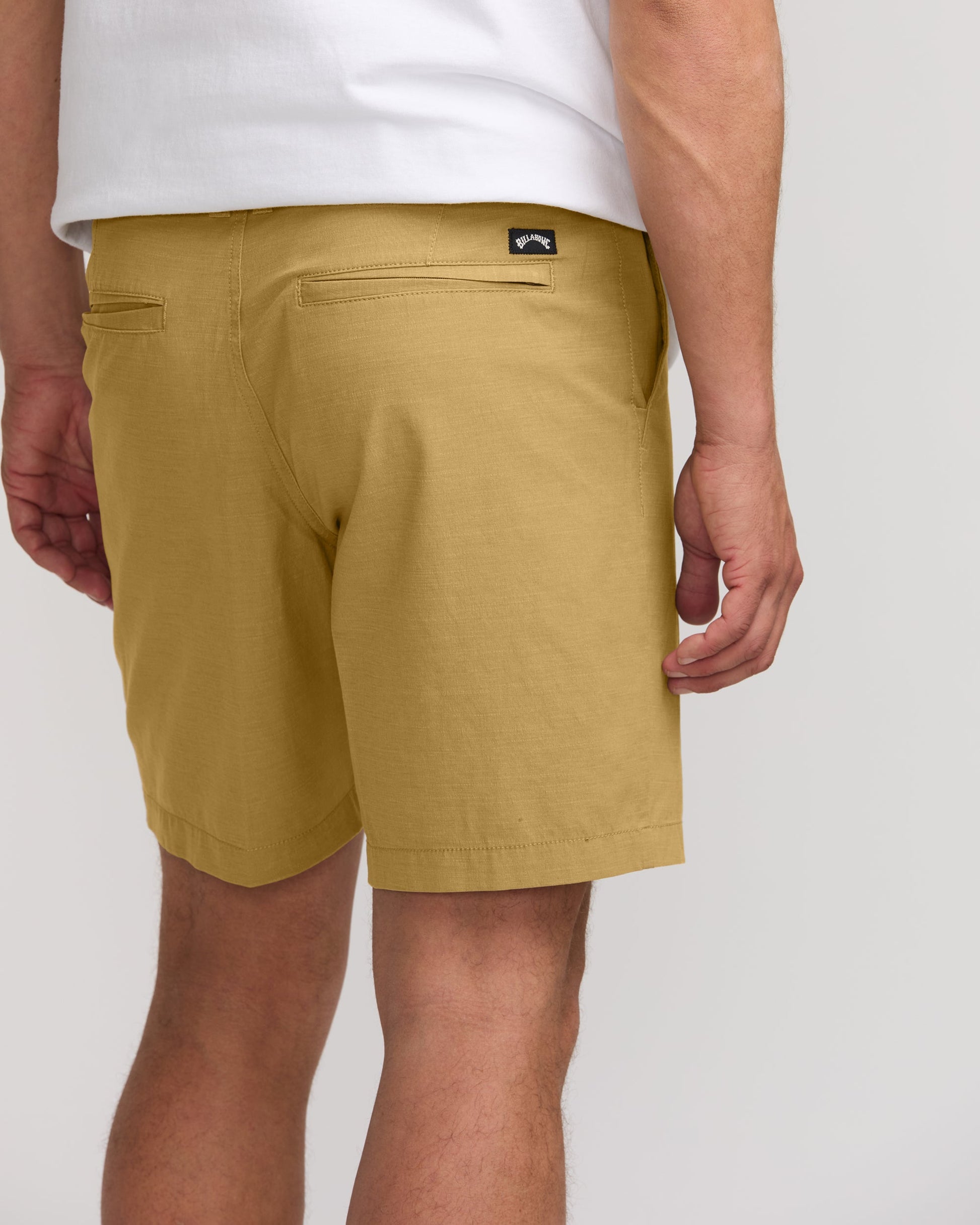 Versatile hybrid shorts with 4-way stretch cotton poly fabric move seamlessly from waves to street. Garment dyed with DWR, they feature a relaxed chino style, zipper pockets and button fly - perfect for active guys seeking modern amphibious style. Featured here in the Khaki colorway.