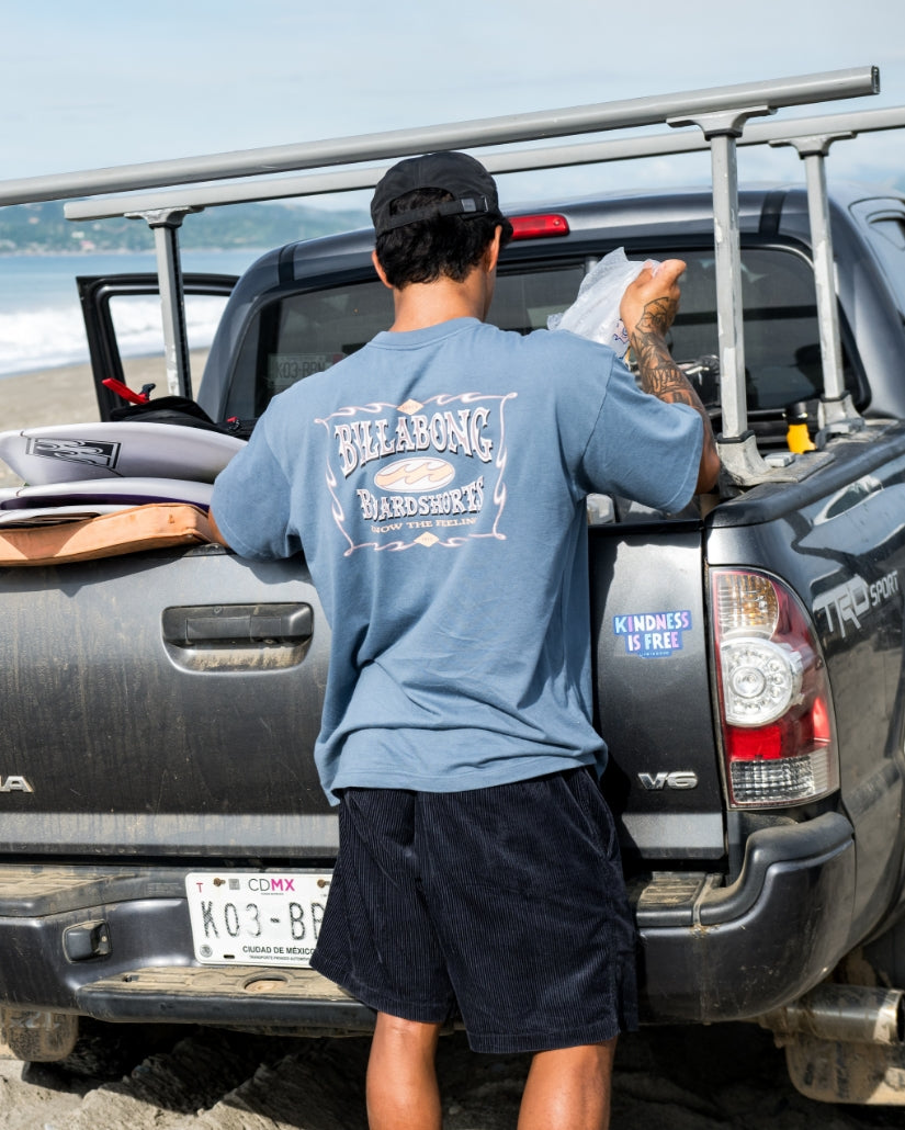 Our heavyweight cotton t-shirt brings back the classic throwback fit with generous shoulders and longer sleeves. Garment-washed for extra softness, with bold front-and-back screen prints for authentic street style. Featured here in the Blue colorway.