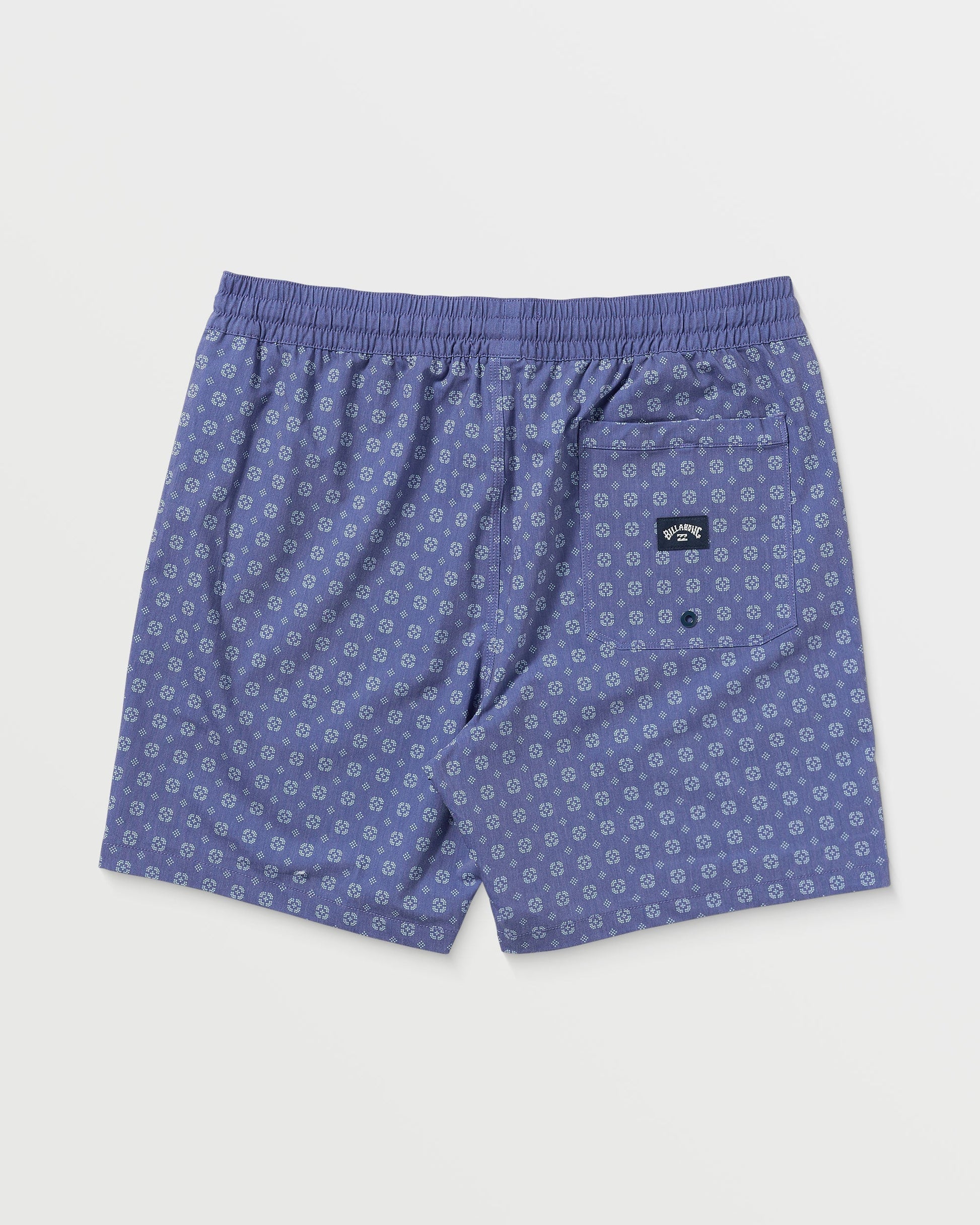 Our comfy layback trunks keep things easy with a 16-inch length and elastic waist. Pro stretch fabric moves with you, while side and back pockets hold essentials for spontaneous summer adventures. Featured here in the Blue colorway.