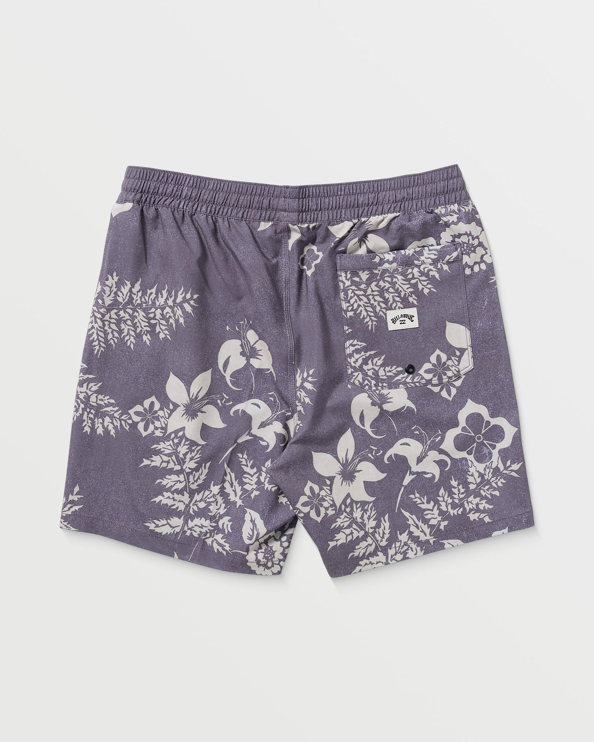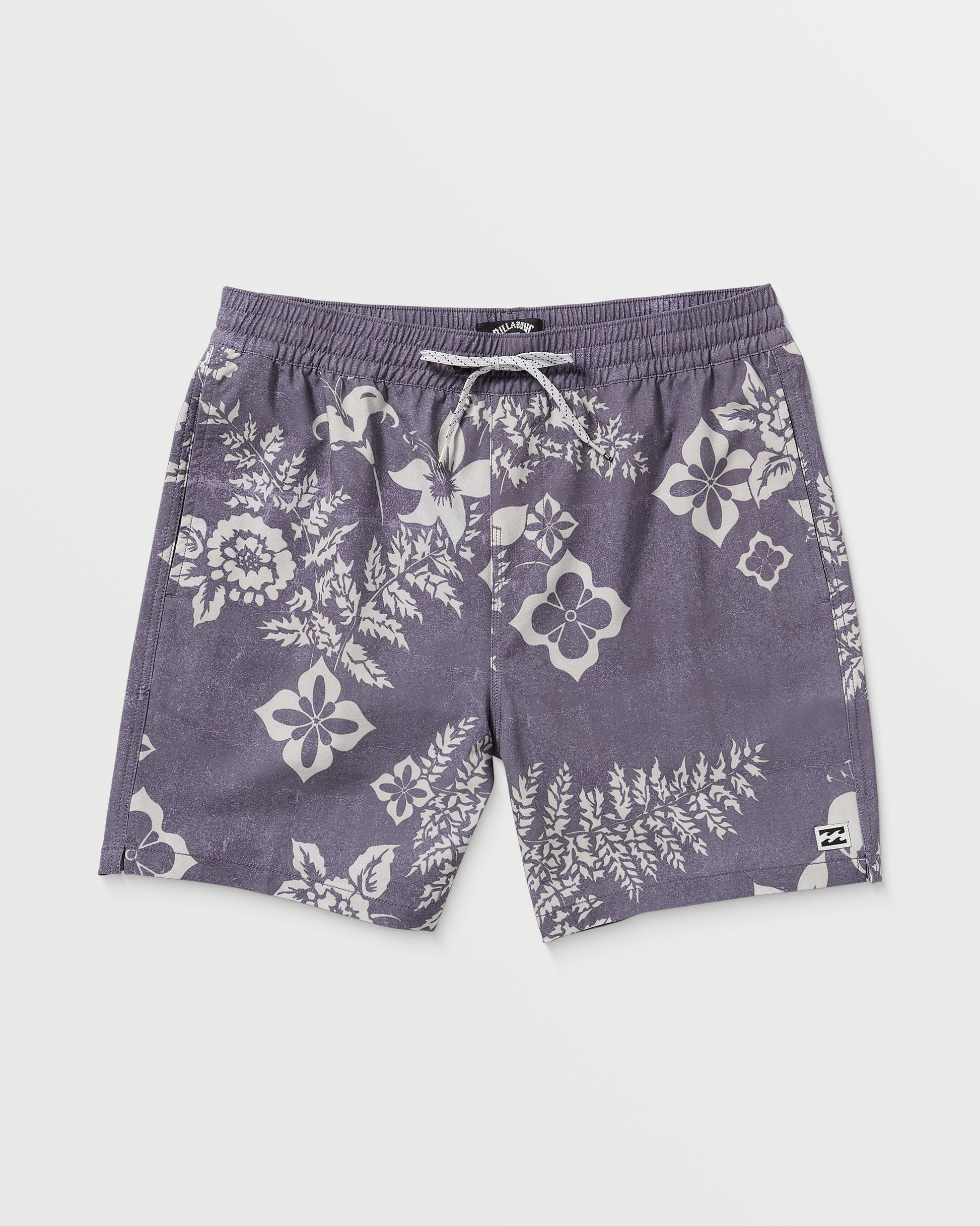 Our comfy layback trunks keep things easy with a 16-inch length and elastic waist. Pro stretch fabric moves with you, while side and back pockets hold essentials for spontaneous summer adventures. Featured here in the Purple colorway.