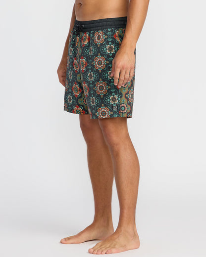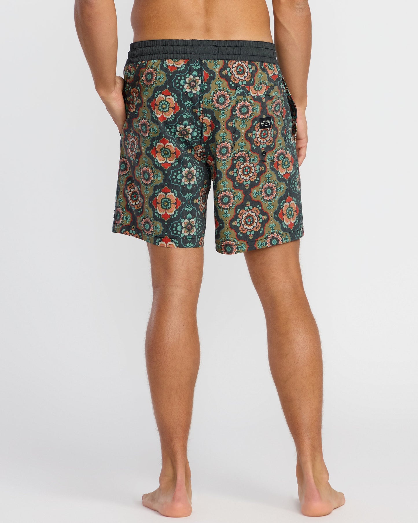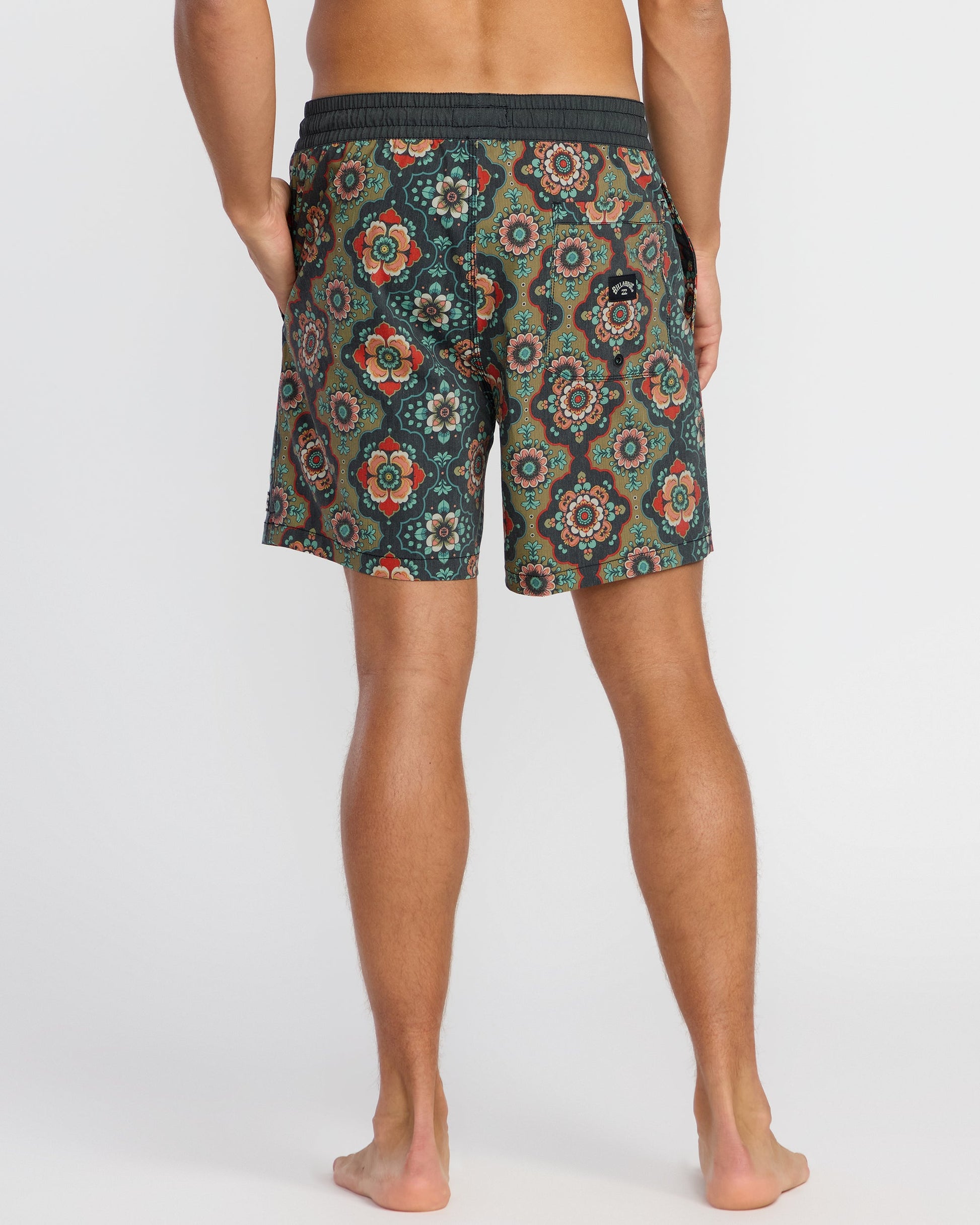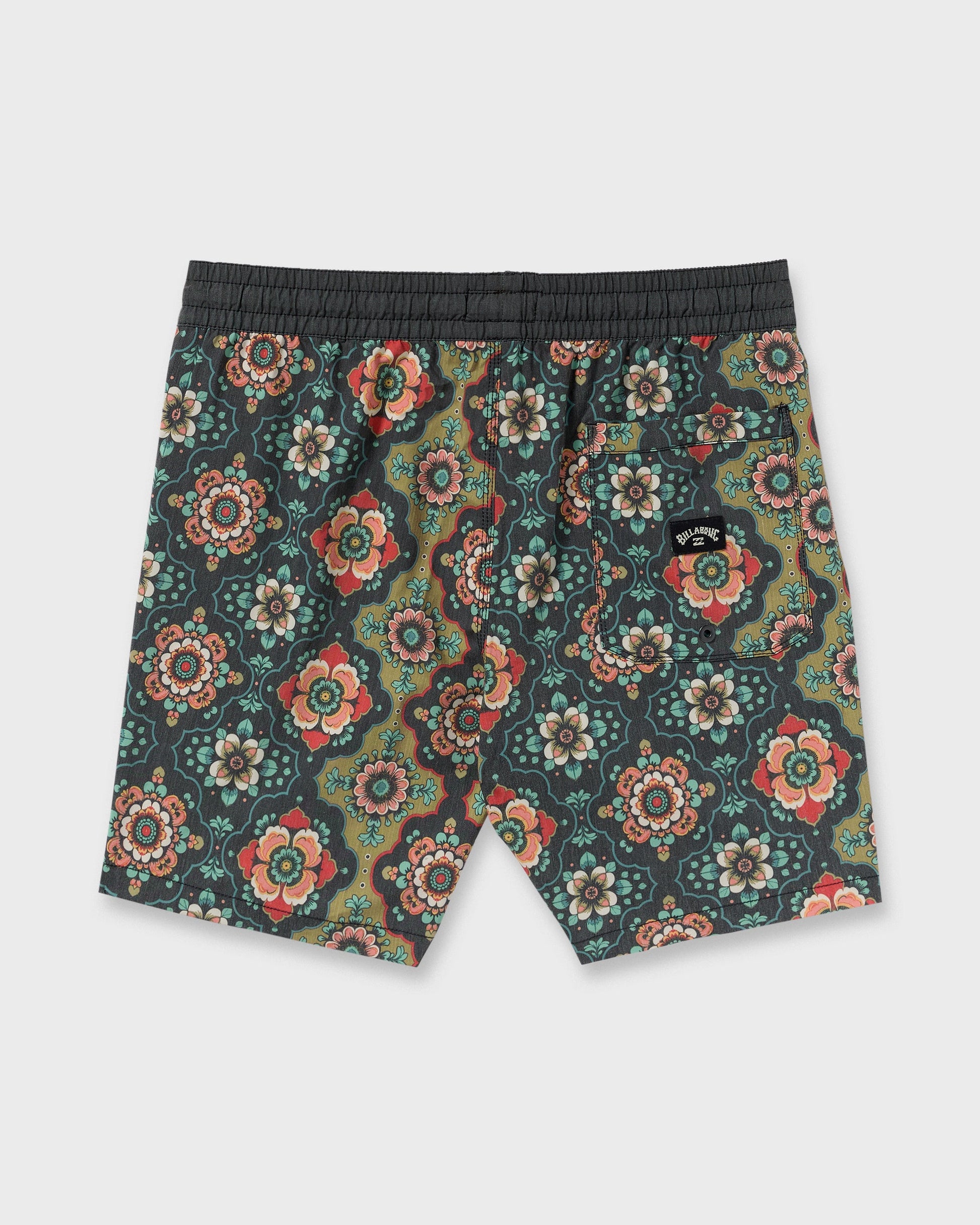 Our comfy layback trunks keep things easy with a 16-inch length and elastic waist. Pro stretch fabric moves with you, while side and back pockets hold essentials for spontaneous summer adventures. Featured here in the Black colorway.