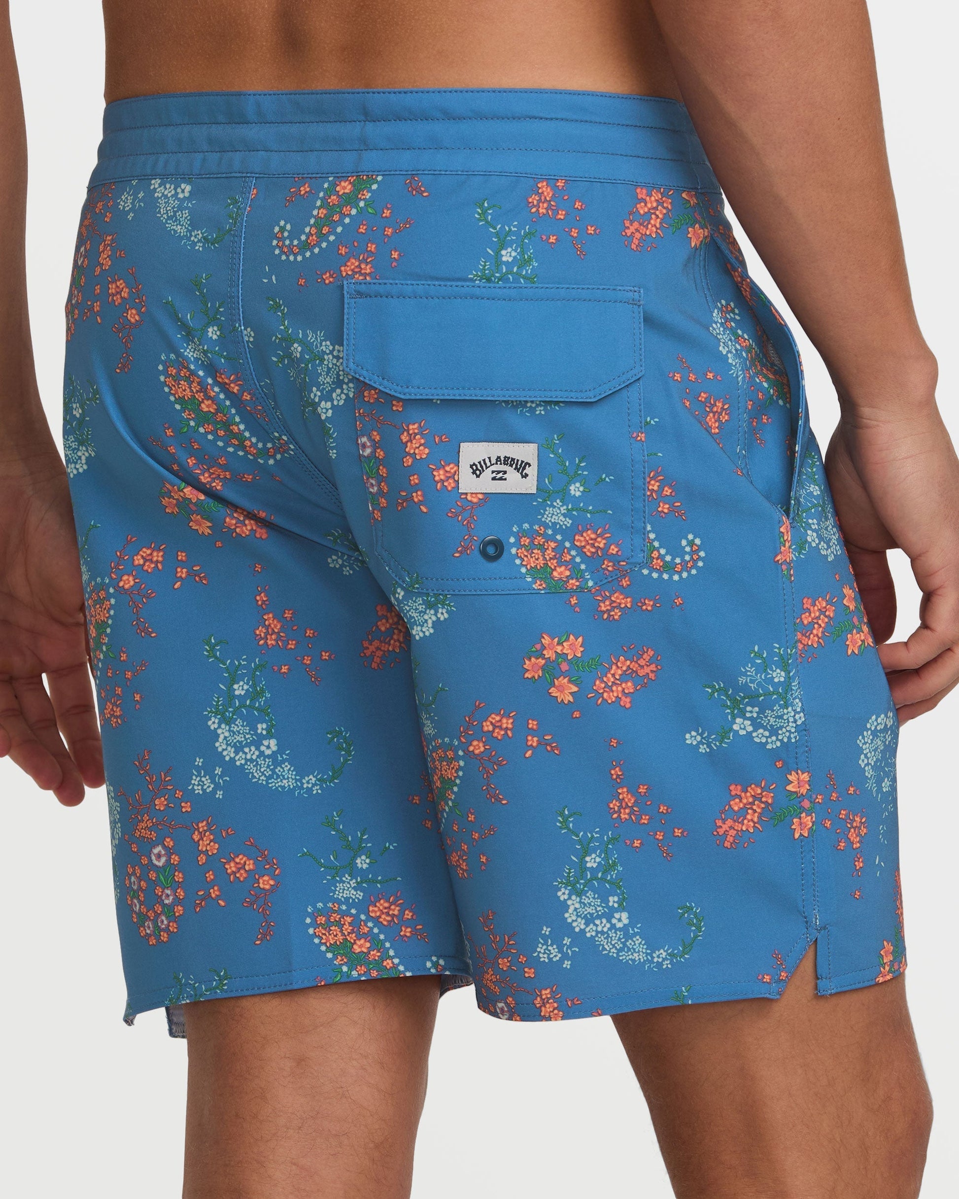 Lightweight yet durable poly-cotton stretch boardshorts with a versatile 18" lo tide length. Featuring handy back patch and side seam pockets, plus a secure drawstring waist, these Billabong shorts were made for endless summer adventures. Featured here in the Bay Blue colorway.