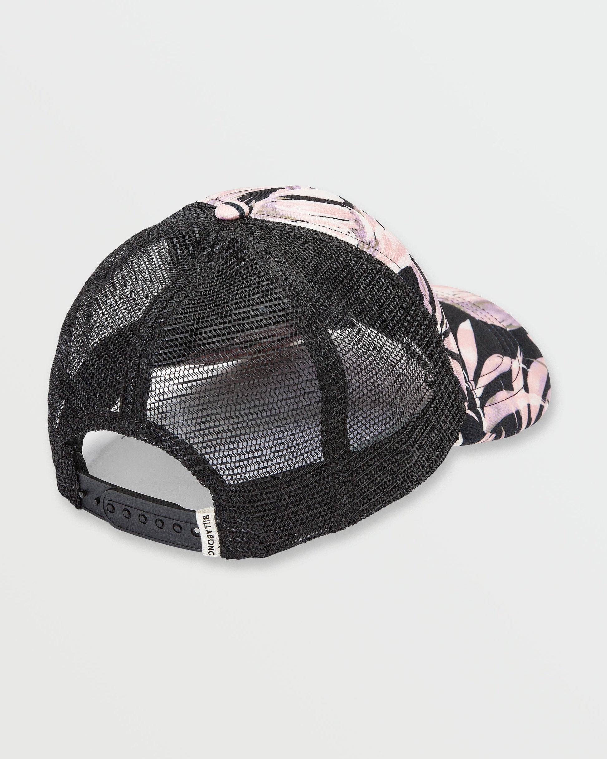 Our Billabong printed trucker hat is a mashup of our surf heritage. Lightweight polyester construction with structured foam crown. Fitted design with adjustable plastic snapback closure. Exterior branding. Featured here in the Black Floral colorway.