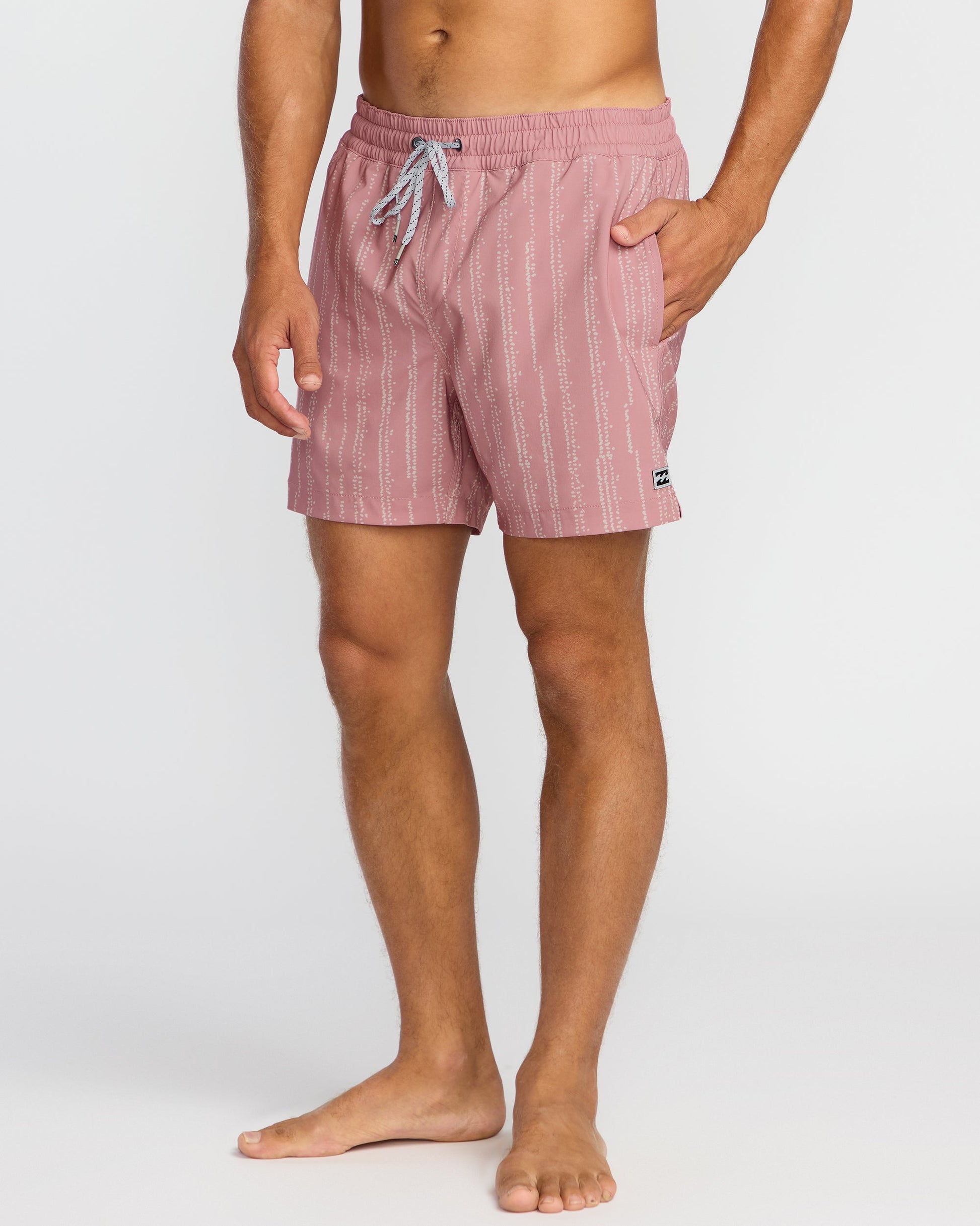 Stylish and functional stretch trunks with an on-trend 16" layback fit. 4-way stretch fabric and internal compression lining provide support and mobility. Back pocket stores essentials. Elastic waist ensures the perfect fit for any beach activity. Featured here in the Gum colorway.