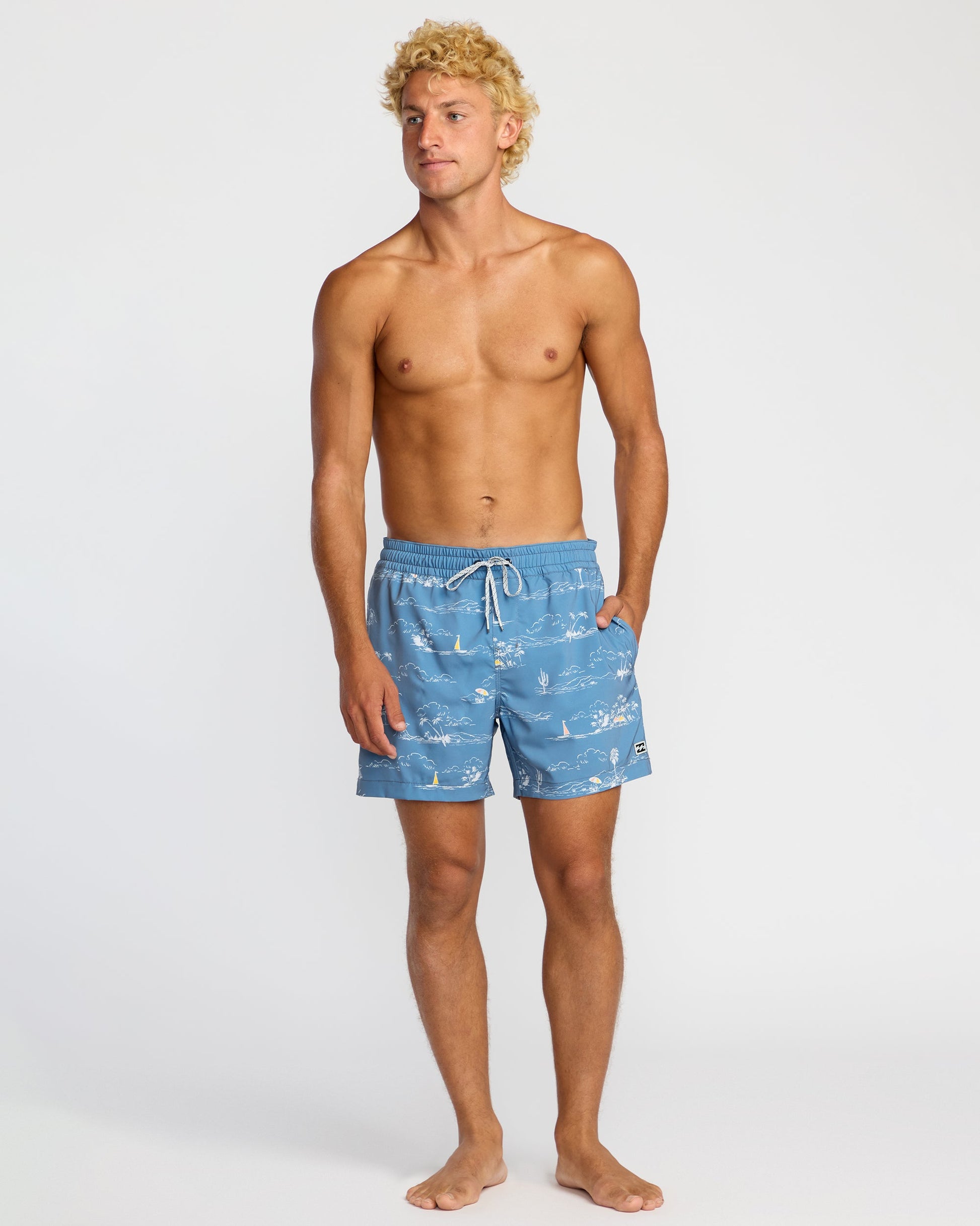 Stylish and functional stretch trunks with an on-trend 16" layback fit. 4-way stretch fabric and internal compression lining provide support and mobility. Back pocket stores essentials. Elastic waist ensures the perfect fit for any beach activity. Featured here in the Steel Blue colorway.
