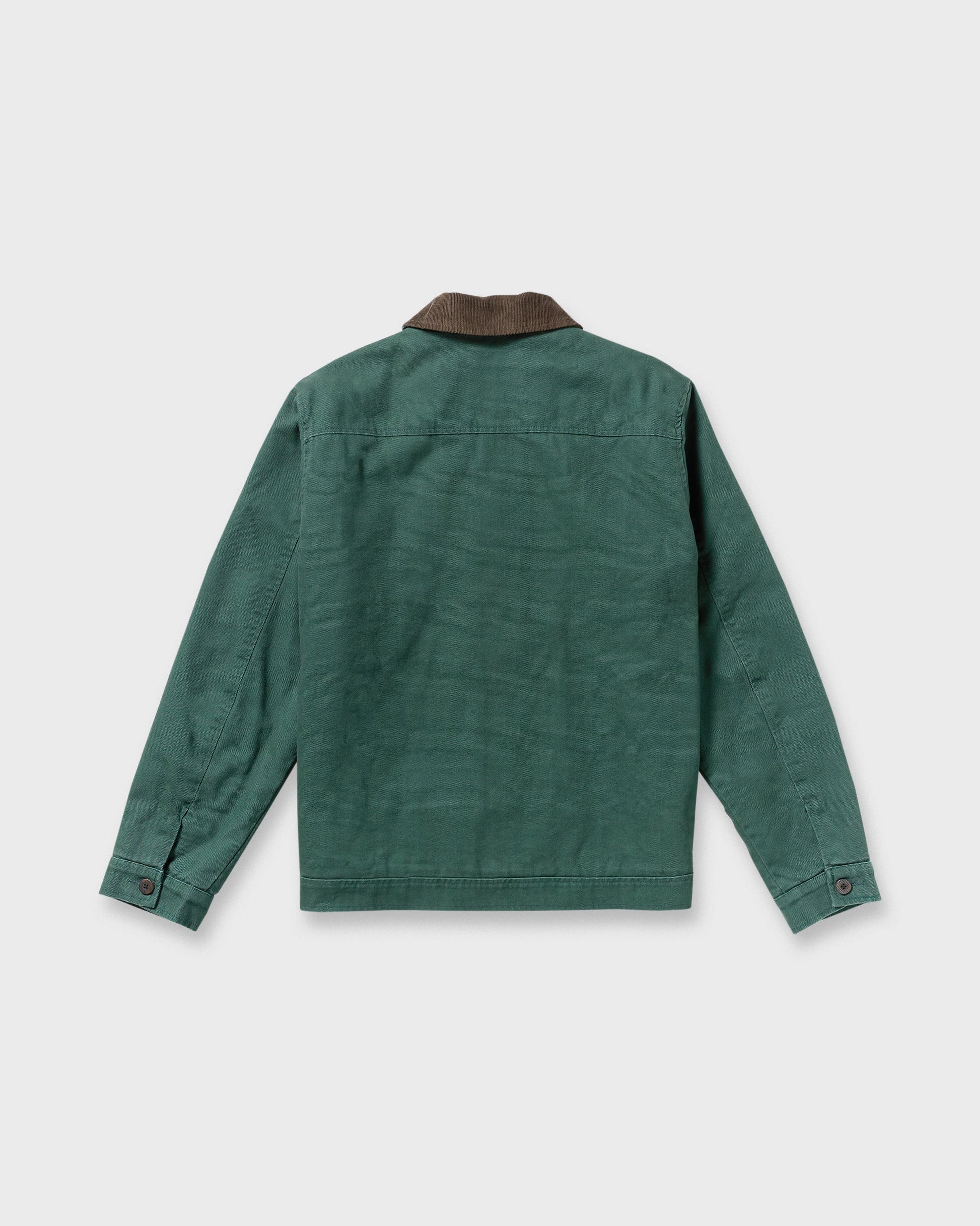 Our heavy canvas Mill Spec Garage Jacket brings practical warmth with 100g insulation, hand pockets and a zipper chest pocket. The corduroy collar adds a refined touch to this regular-fit essential. Featured here in the Green colorway.