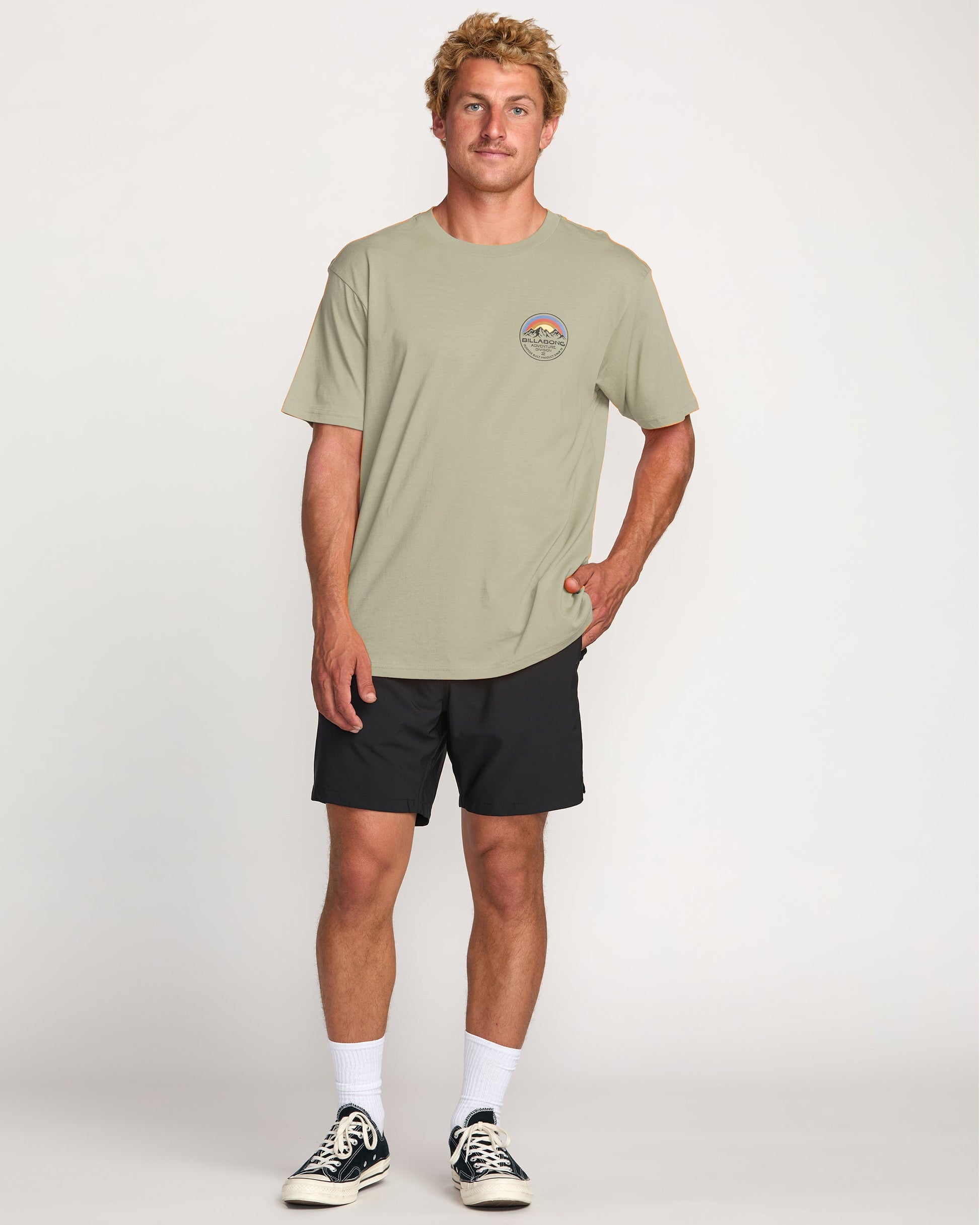 Our men's Rockies A/Div Tee crafts casual comfort from 100% organic cotton, garment-washed for lived-in softness. The relaxed crewneck design rocks a timeless graphic across the chest, channeling all-day chill. Perfect for any adventure.