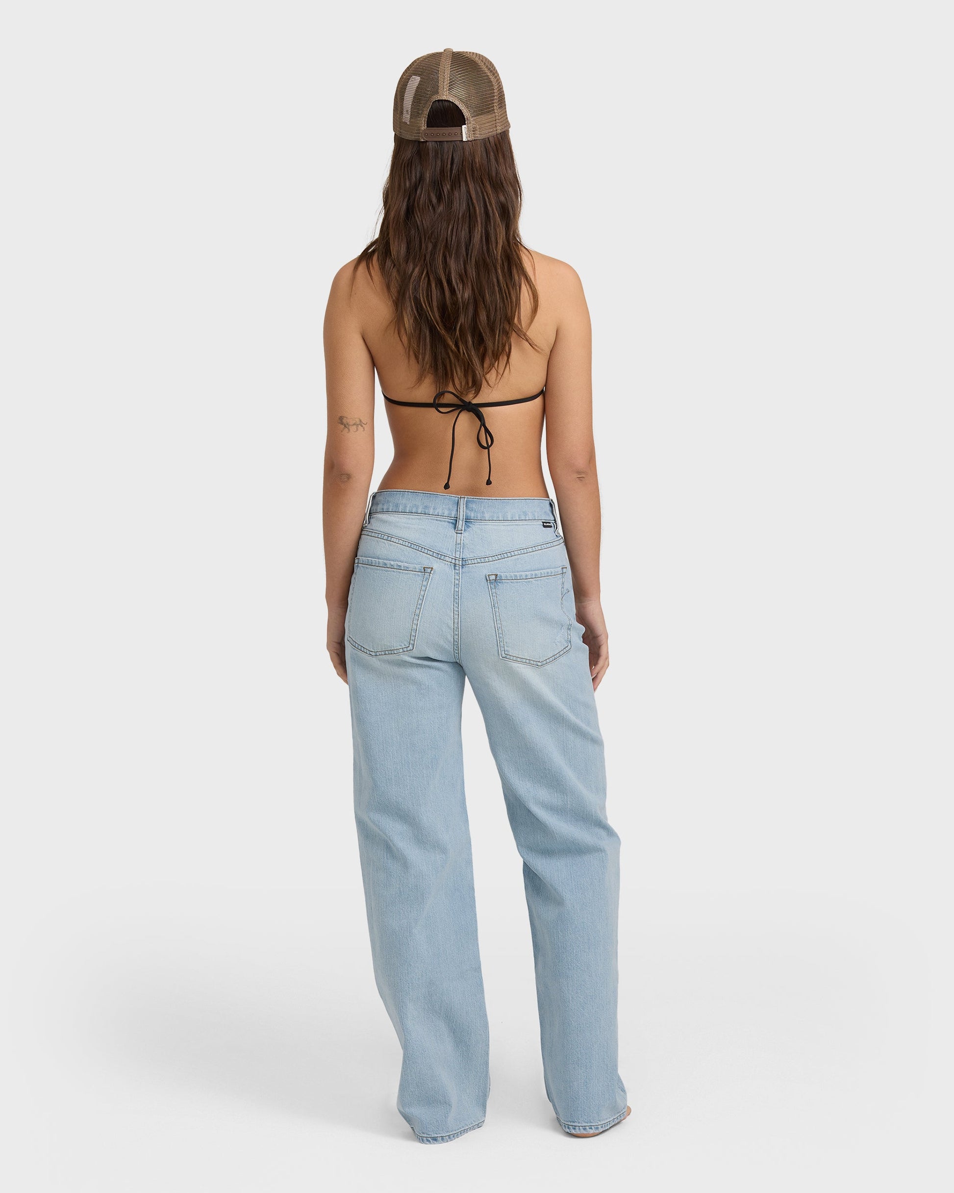 Our vintage-washed straight leg pants combine classic 5-pocket styling with just the right amount of stretch. The relaxed fit and fixed waist create an easygoing silhouette that works everywhere. Featured here in the Blue colorway.