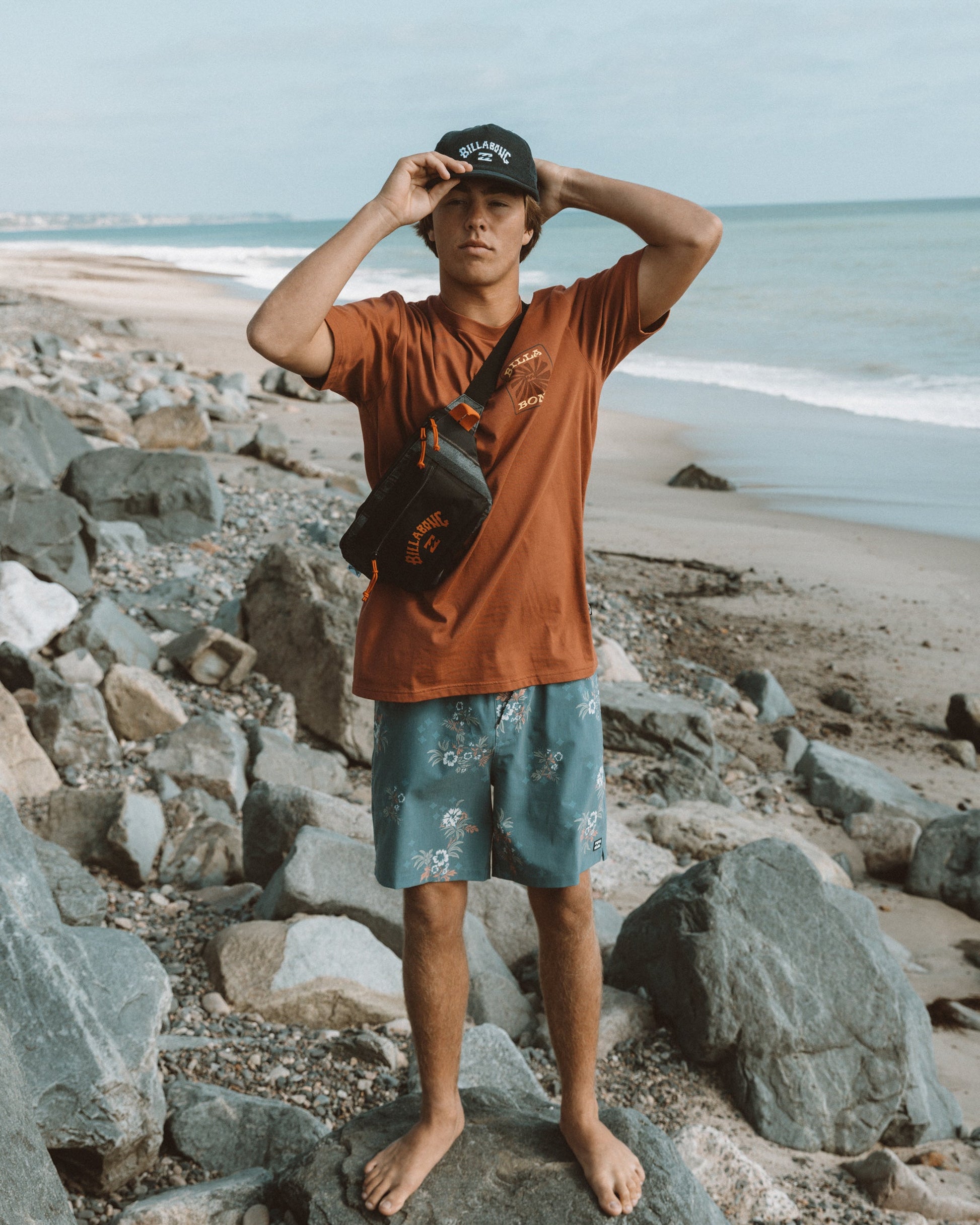 Our Billabong Sundays Layback Trunks offer casual style with a relaxed 17" fit in stretchy poly cotton. Back and side pockets provide convenience, while the elastic waist allows easy movement. Finished with a branded woven label. Featured here in the Steel Blue colorway.
